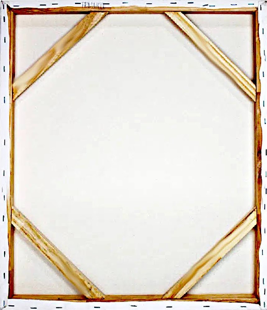 Basicamente as telas são formadas por um pedaço de tecido esticado e grampeado sobre um chassi de madeira. Os grampos podem ficar na parte posterior ou lateral. As grampeadas no verso são mais caras, pois o tamanho do tecido é maior. São as minhas preferidas.